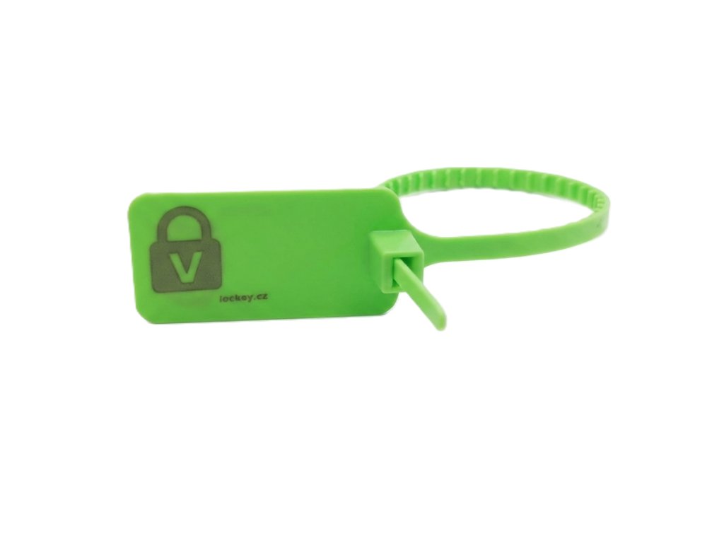 LOTO popisovatelný stahovací štítek "V" - ZELENÝ (1ks)